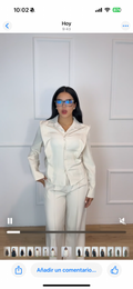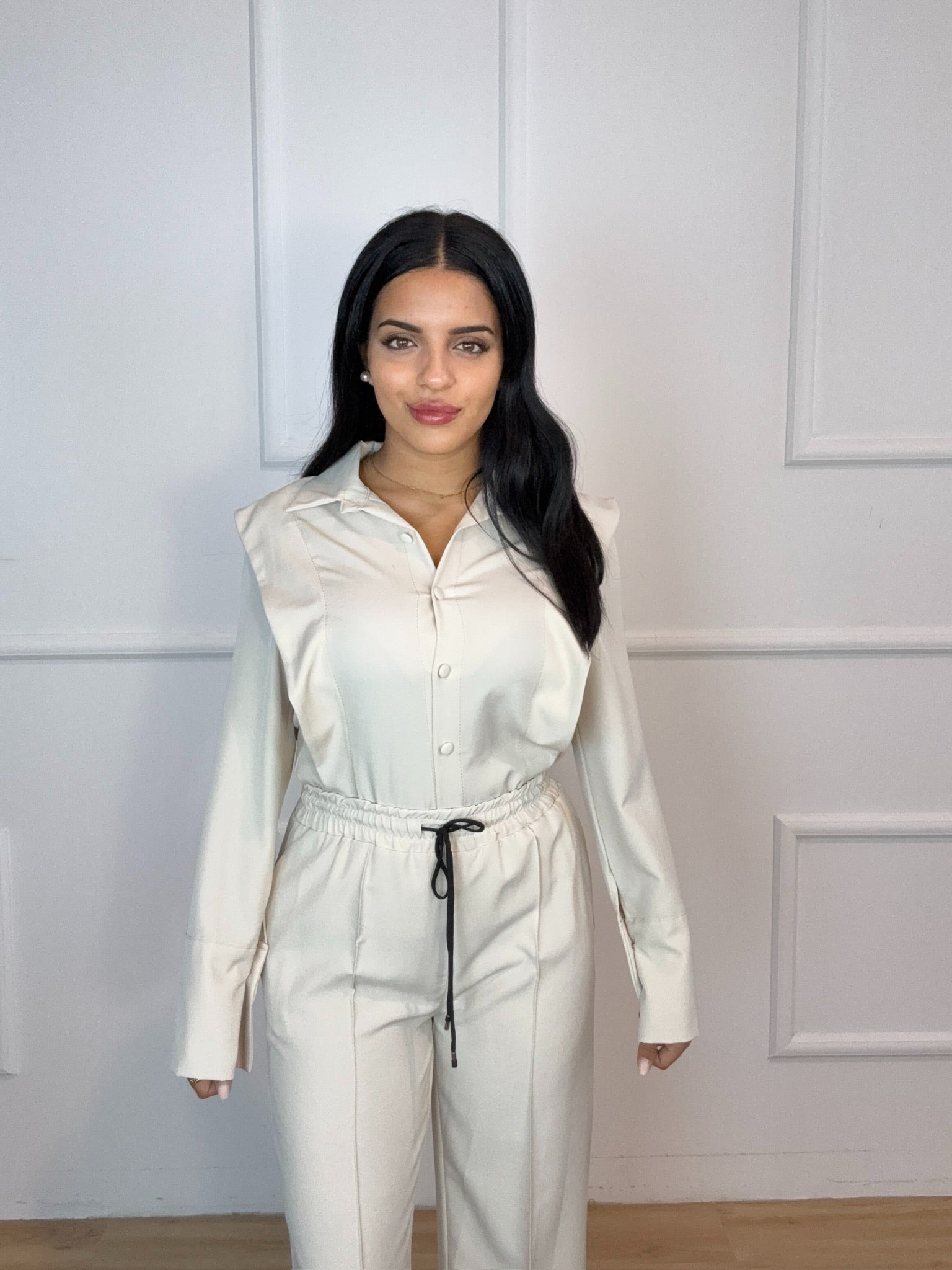 The Cuba Beige Set offers a polished and comfortable look thanks to its flowing shirt with shoulder detailing and mid-rise, straight-leg pants. The beige hue provides a luminous, elegant look that's easy to style, while the elastic drawstring waist offers a tailored fit so you can move freely from size S to size L.