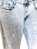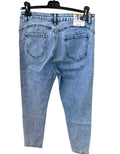 Tallas: 38 y 42. Color: azul denim lavado. Vaquero Saray de corte skinny con efecto desgastado y pequeños rotos. Cinco bolsillos y cierre de botón y cremallera. Tejido cómodo que estiliza la pierna; ideal para looks casuales con zapatillas o botines.