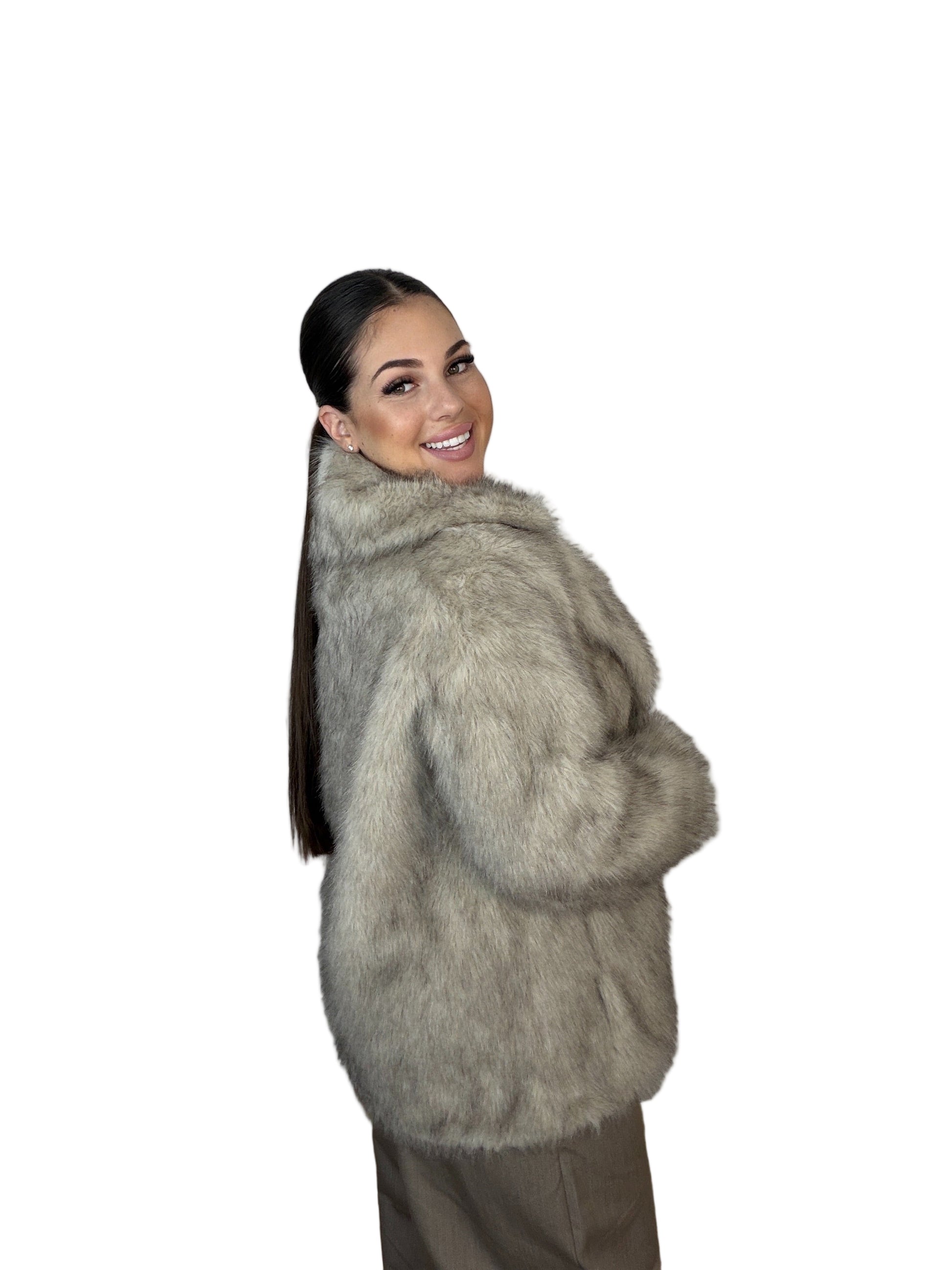 Talla Única (da S-L). Color: según foto. Abrigo Huelva de pelo suave tipo eco-fur, cuello voluminoso y manga amplia. Ligero y muy calentito, caída recta y largo medio. Perfecto para elevar looks diarios o de fiesta. Combina con vaqueros o vestidos.