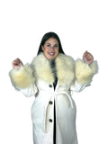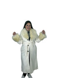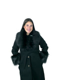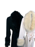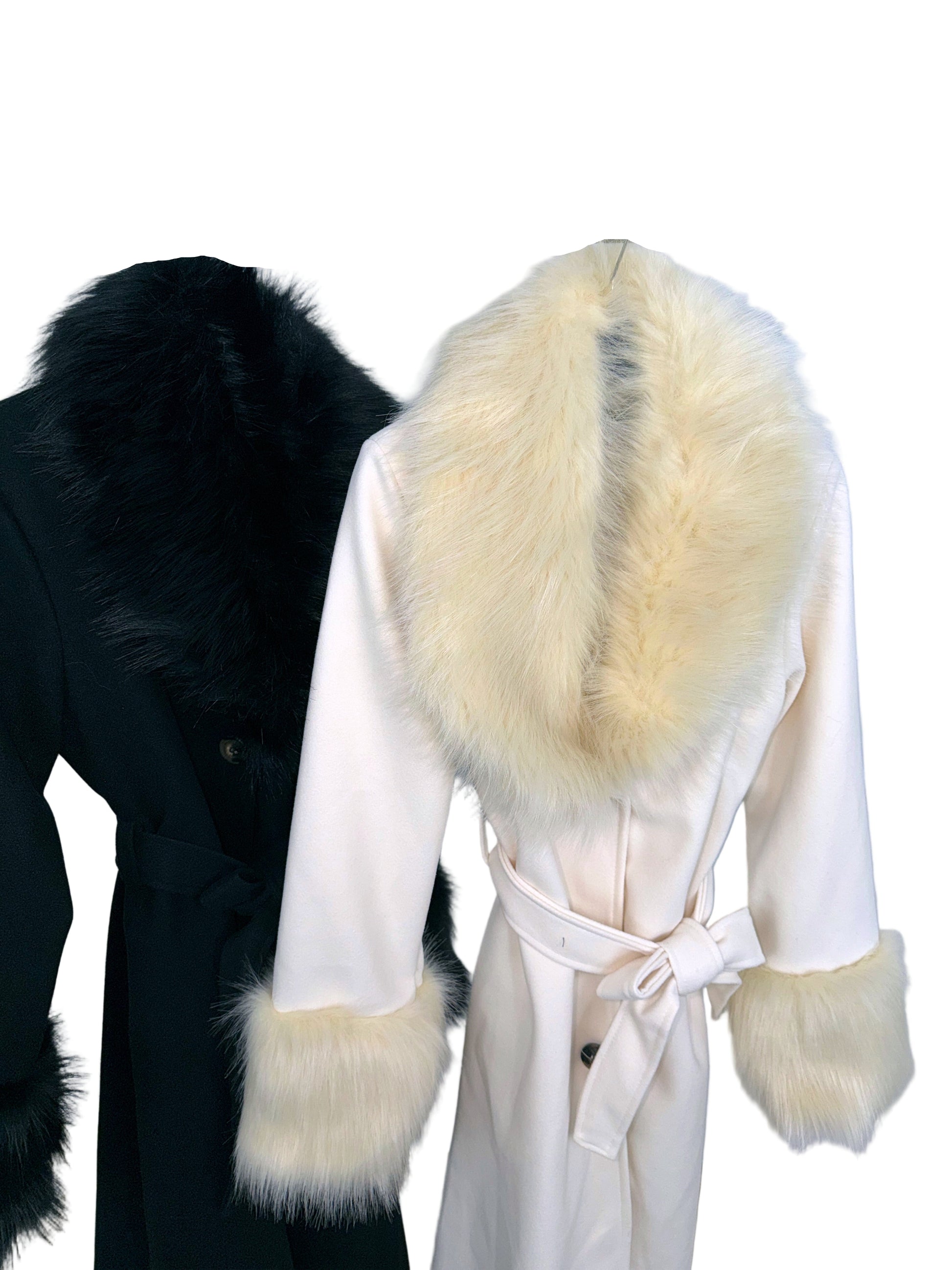 Abrigo Paris largo con cuello y puños de pelo sintético, cierre de botones y cinturón que realza la figura. Tejido cálido y suave, con bolsillos laterales. Perfecto para looks elegantes o casual.