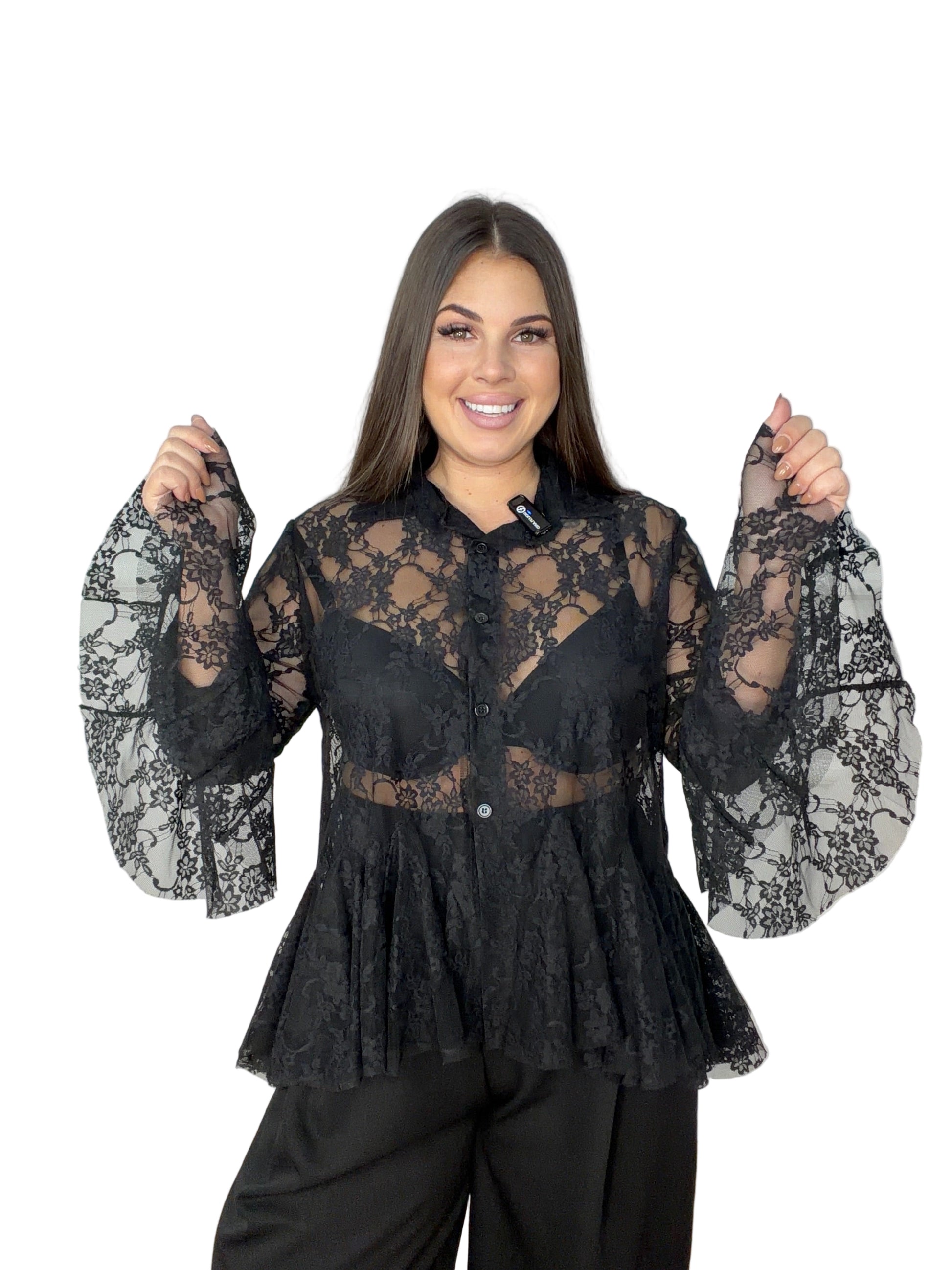 Camisa confeccionada en encaje delicado que combina elegancia y comodidad. Su diseño versátil se adapta a múltiples siluetas gracias a su corte ajustable, ofreciendo una única talla que abarca desde la S hasta la L. Perfecta para crear looks sofisticados tanto en ocasiones especiales como en el día a día. El encaje proporciona una textura refinada que eleva cualquier conjunto.