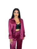 Look “pijamero chic” con pantalón satinado y sandalia minimal.