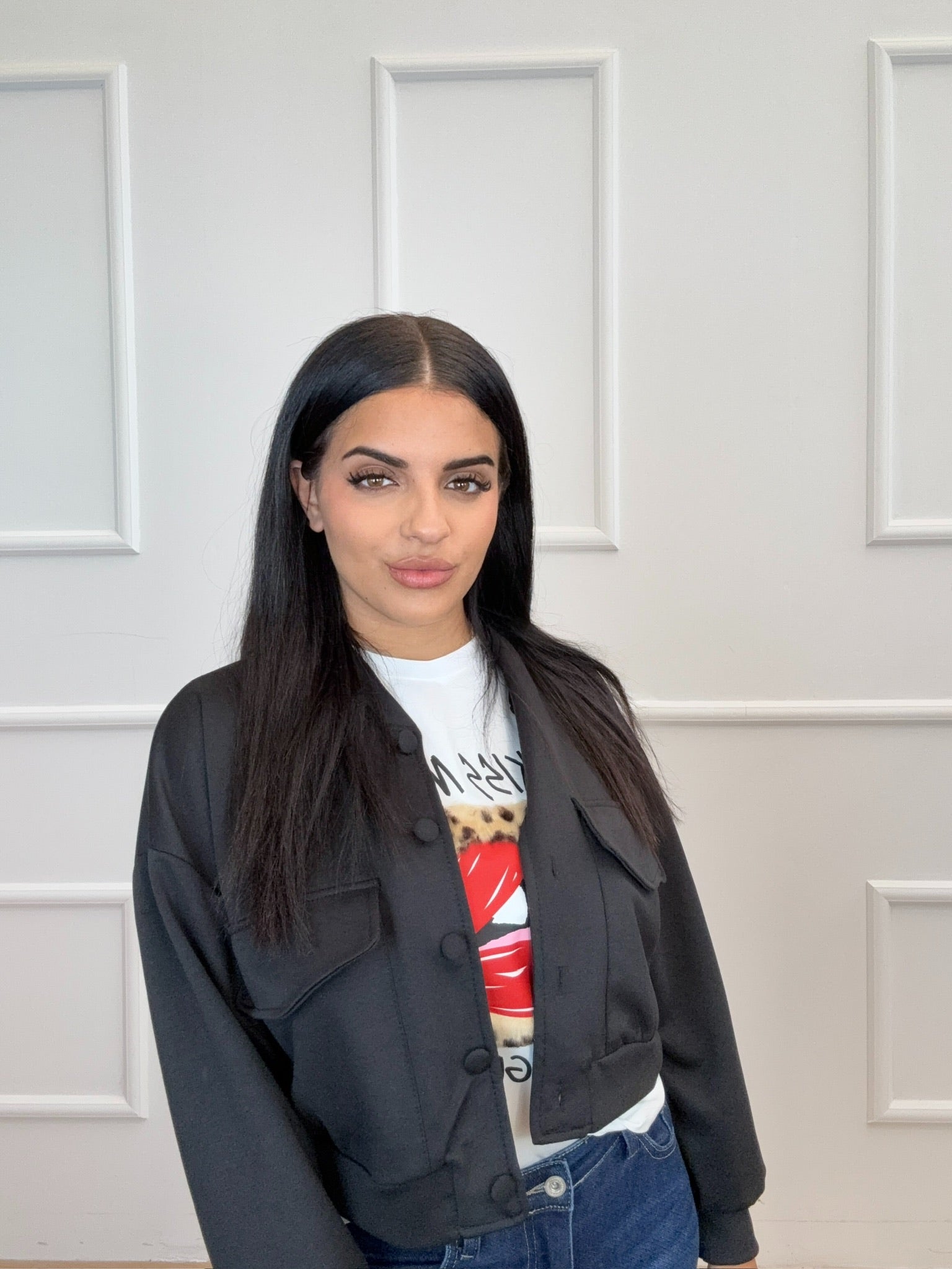 La Chaqueta Marbella es esa chaqueta corta de mujer que convierte cualquier look en un acierto: silueta cropped moderna, cuello redondo limpio, bolsillos con solapa y botones al tono que afinan el diseño. Su tejido tipo sudadera, suave y con caída, la hace ideal para entretiempo y para sumar un toque urbano a vaqueros, vestidos o pantalones de pinzas. Talla única con ajuste cómodo de la S a la L.