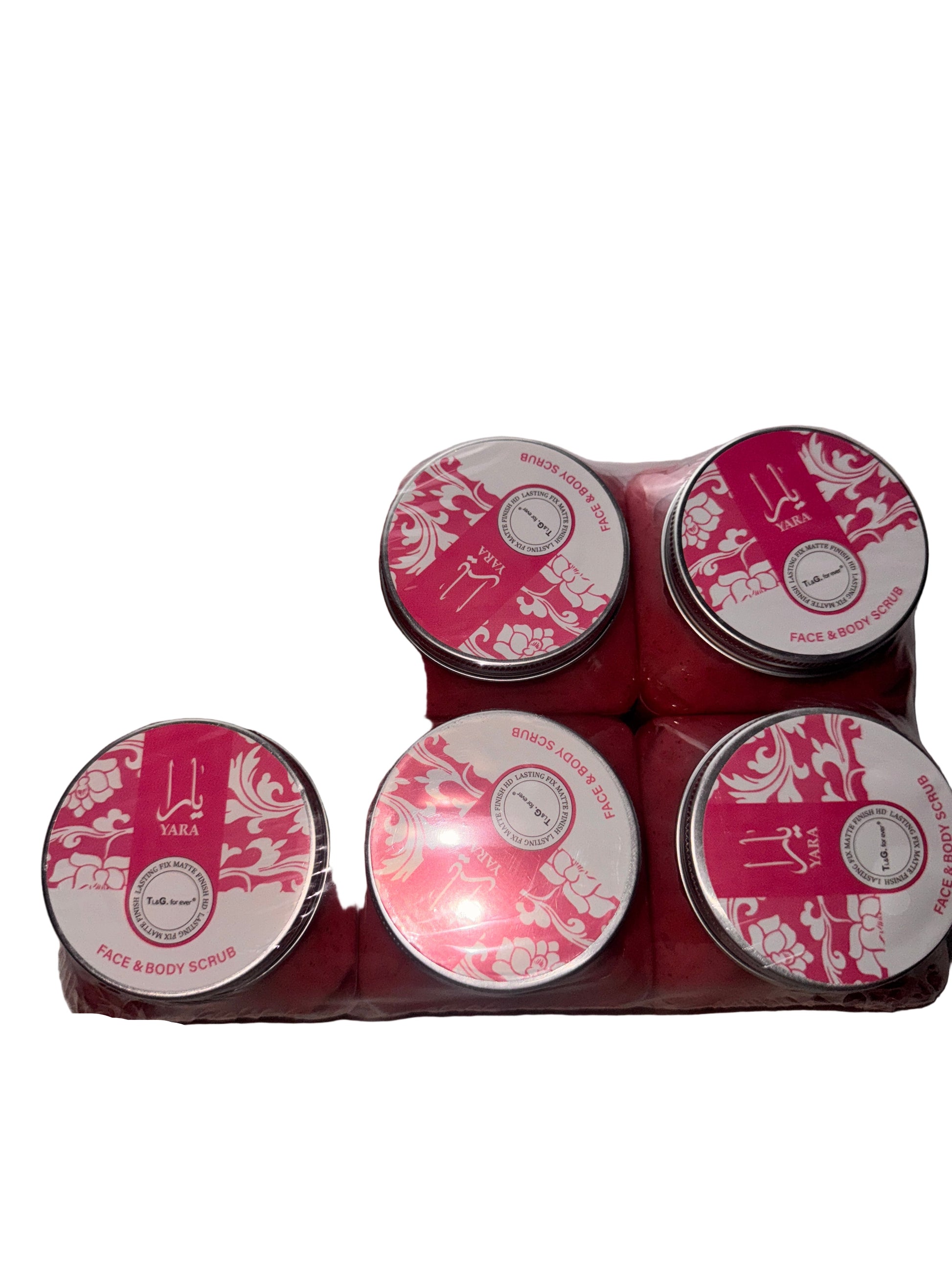 El Exfoliante Yara renueva la piel del rostro y del cuerpo con una textura cremosa de color rosa y delicada fragancia a rosa. Viene en un frasco amplio de 350 ml con tapa de rosca metálica, fácil de abrir y perfecto para tener en la ducha.