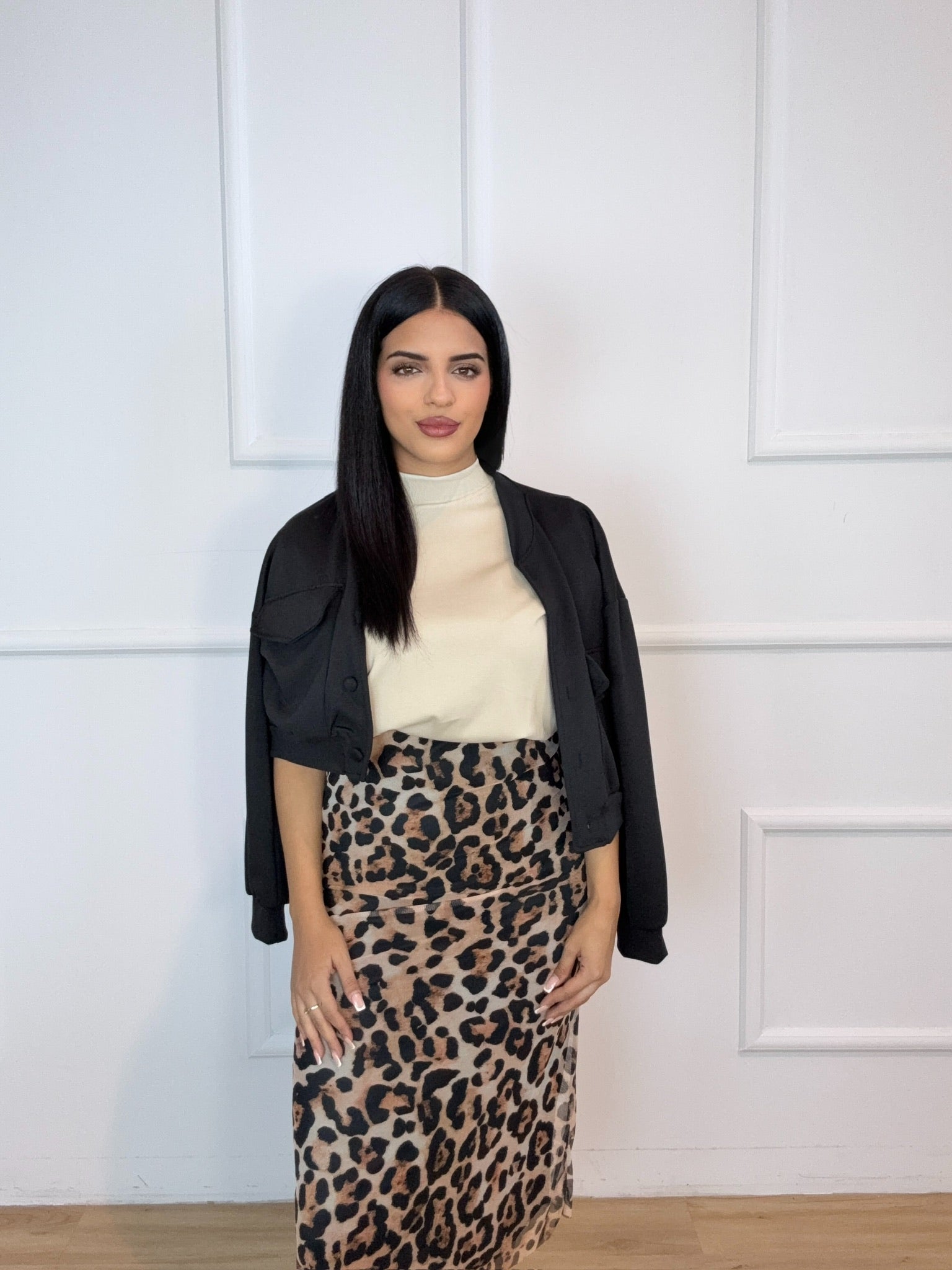 Talla Única: da desde la S hasta la XL. Estampado leopardo en tonos tierra. Tejido suave y elástico que se adapta a la figura, con cintura alta para mayor confort. Versátil para looks casual o de noche.