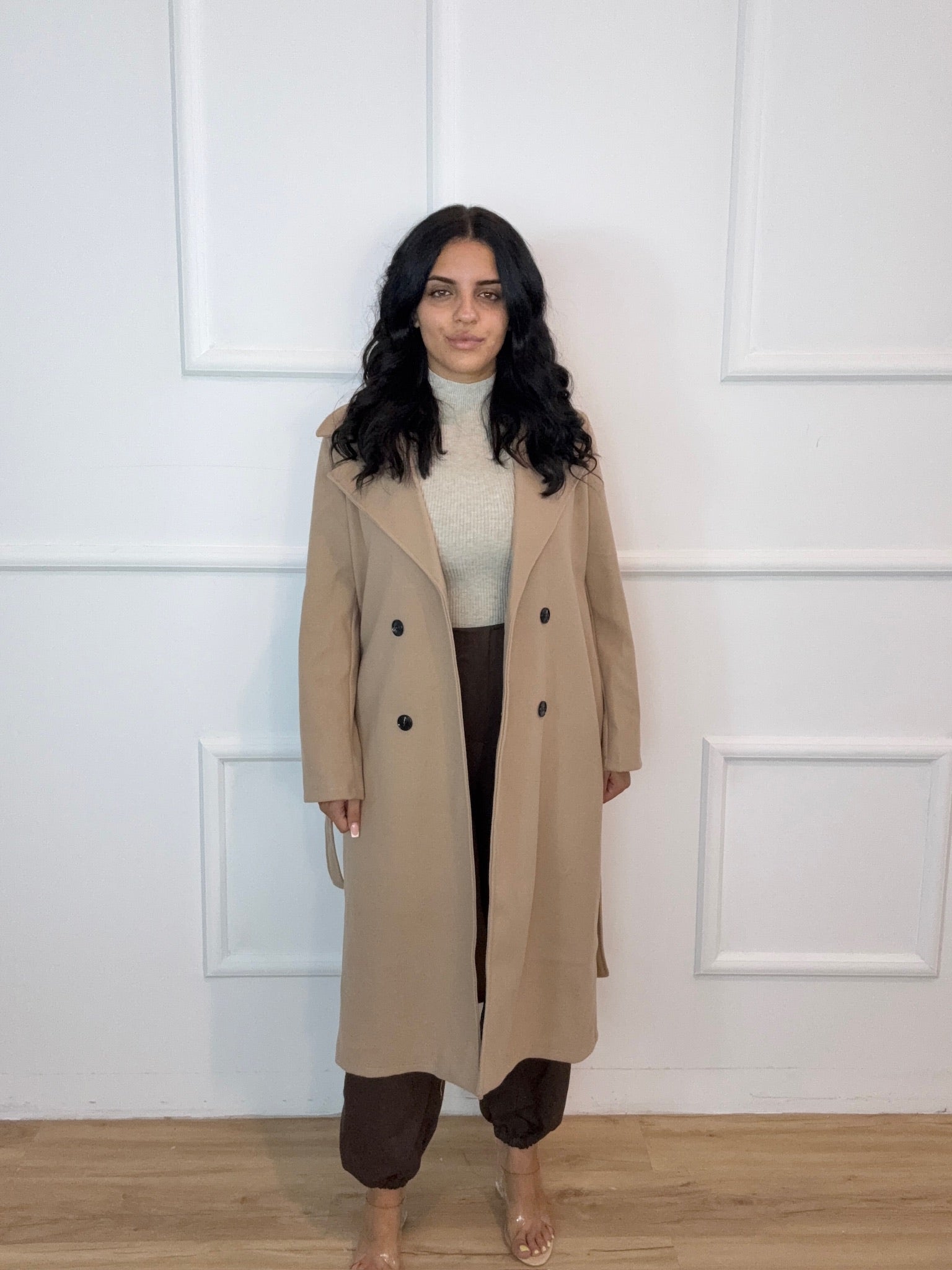 La Gabardina Marbella es ese abrigo cruzado que eleva cualquier look al instante. De corte recto y limpio, con solapas amplias y cinturón del mismo tejido, envuelve la silueta con un efecto estilizador y muy cómodo. El tejido tipo paño tiene cuerpo sin resultar pesado, ideal para entretiempo y días frescos.