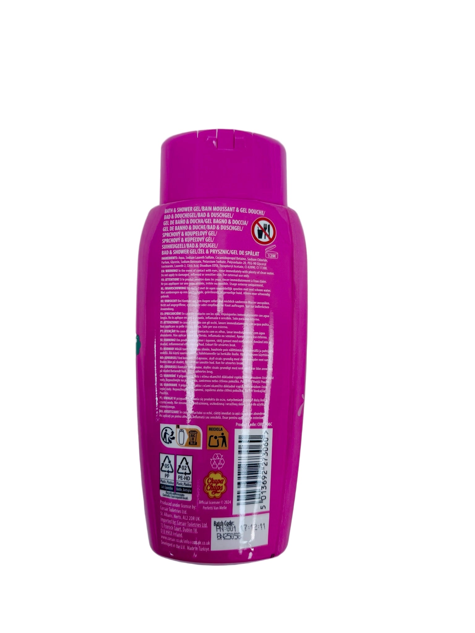 Contenido: 300 ml. Aroma: fresa “Strawberry Swirl”. Gel de baño y ducha Chupa Chups que limpia suavemente y hace espuma cremosa, dejando la piel suave e hidratada con un perfume dulce y duradero. Ideal para uso diario. Envase rosa práctico con tapón flip-top.