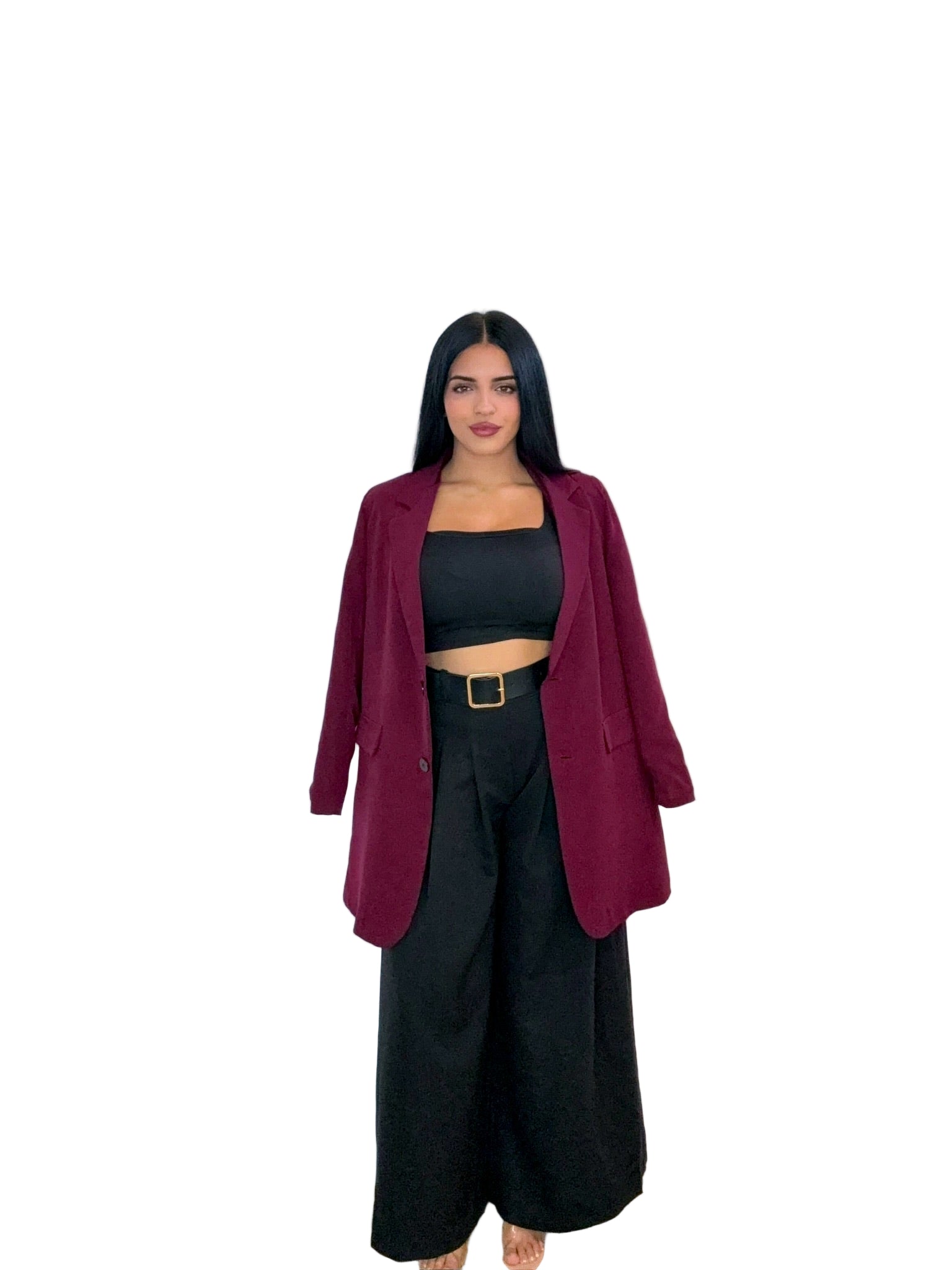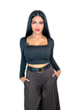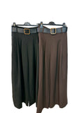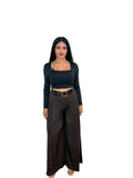 Talla Única: da desde la S hasta la L. Colores: Negro y Marrón. Pantalón Italia Top de pierna ancha y caída fluida, con pinzas delanteras y tiro alto que estiliza. Cinturón incluido. Versátil y cómodo para looks casual o más arreglados.