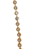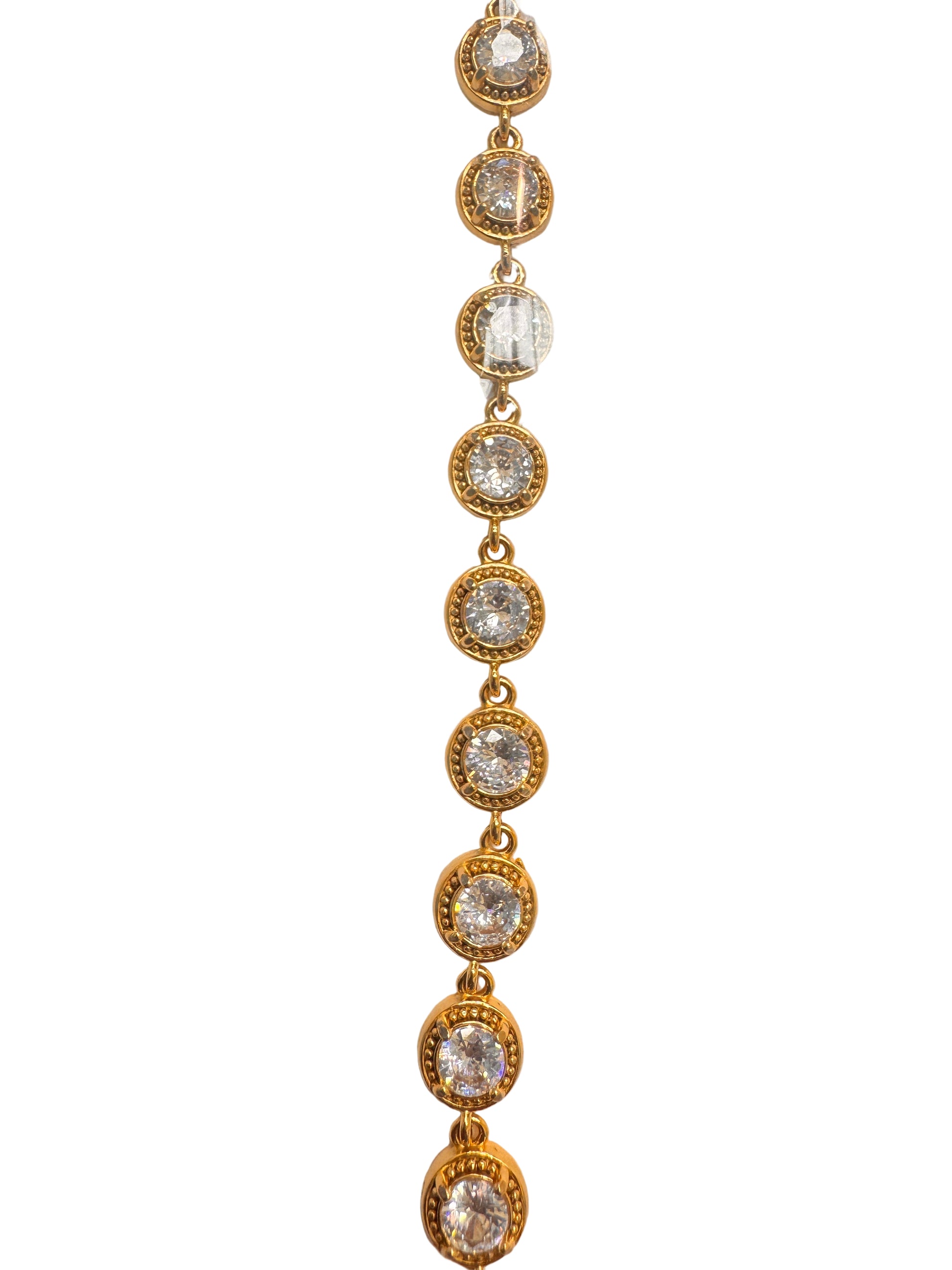 Cristales facetados enmontados: delicados círculos dorados que resaltan el brillo de cada cristal.