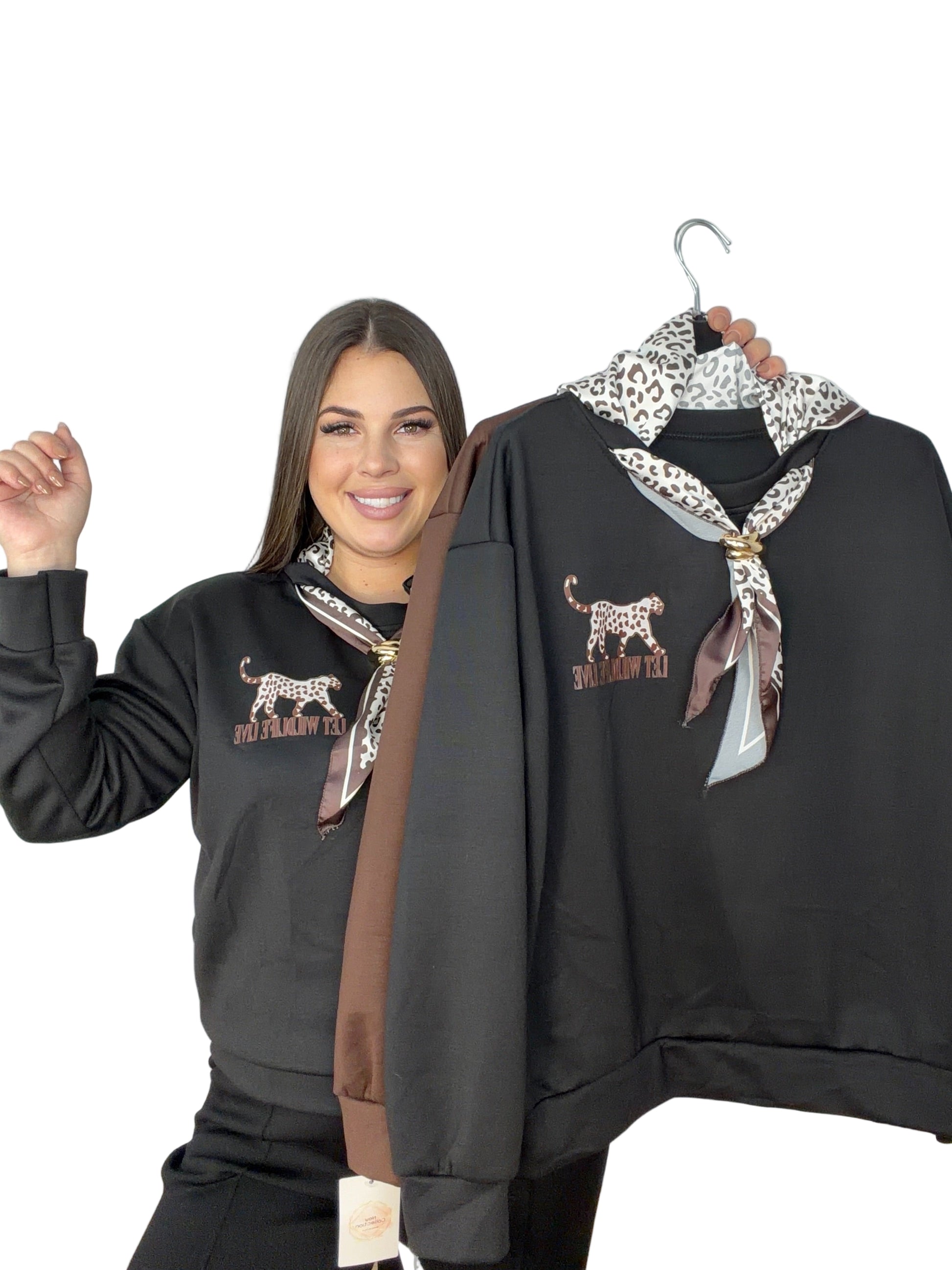 Sudadera versátil con diseño de pañuelo que se adapta a múltiples siluetas. Su confección elástica permite un ajuste cómodo desde la talla S hasta la L, ofreciendo versatilidad sin necesidad de variantes de talla. Perfecta para quienes buscan una prenda funcional que se amolde a diferentes morfologías, manteniendo su estructura y elegancia en cualquier ocasión.