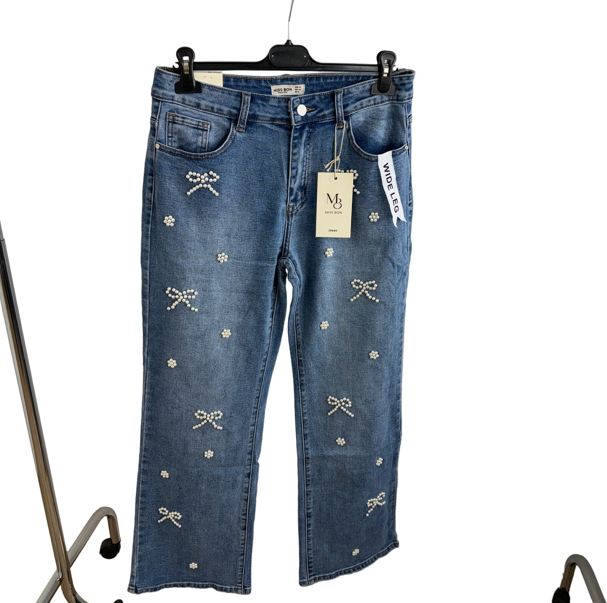 Vaquero de corte clásico confeccionado con denim de calidad superior que combina durabilidad y comodidad. Destaca por su detalle de lazo con perlas, un toque elegante que lo diferencia de los modelos convencionales. La cintura ajustable y el corte versátil lo hacen ideal para múltiples ocasiones, desde looks casuales hasta propuestas más sofisticadas. Disponible en tallas 34 a 42 para garantizar el ajuste perfecto. Una prenda versátil que aporta carácter a cualquier estilismo.