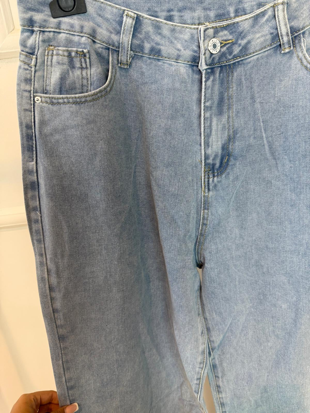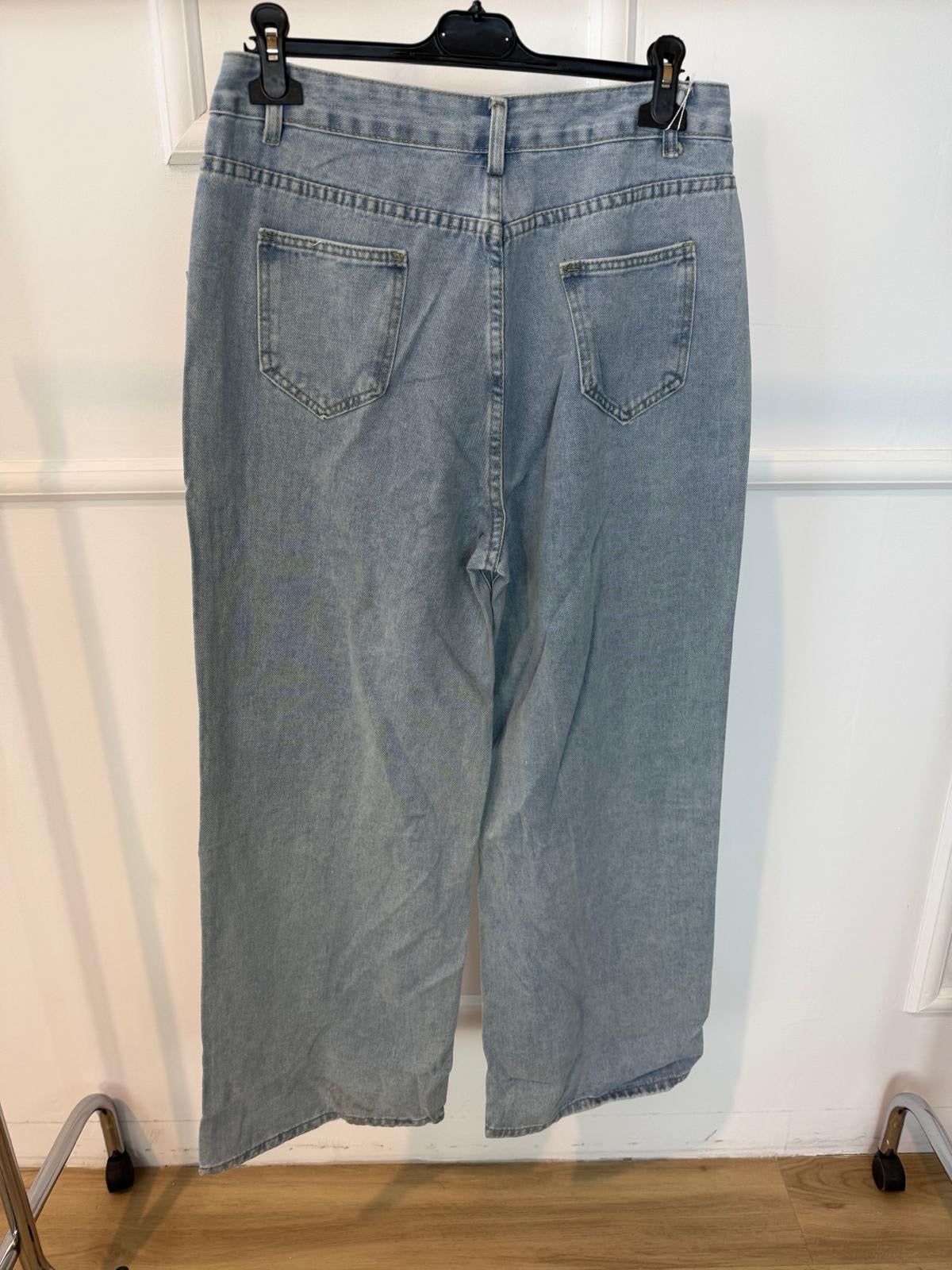Tallas: XL y XXL. Color: denim azul claro. Vaquero de pierna ancha y tiro medio con efecto lavado. Cinco bolsillos y cierre de botón y cremallera. Tejido denim suave, cómodo y versátil para looks casuales.