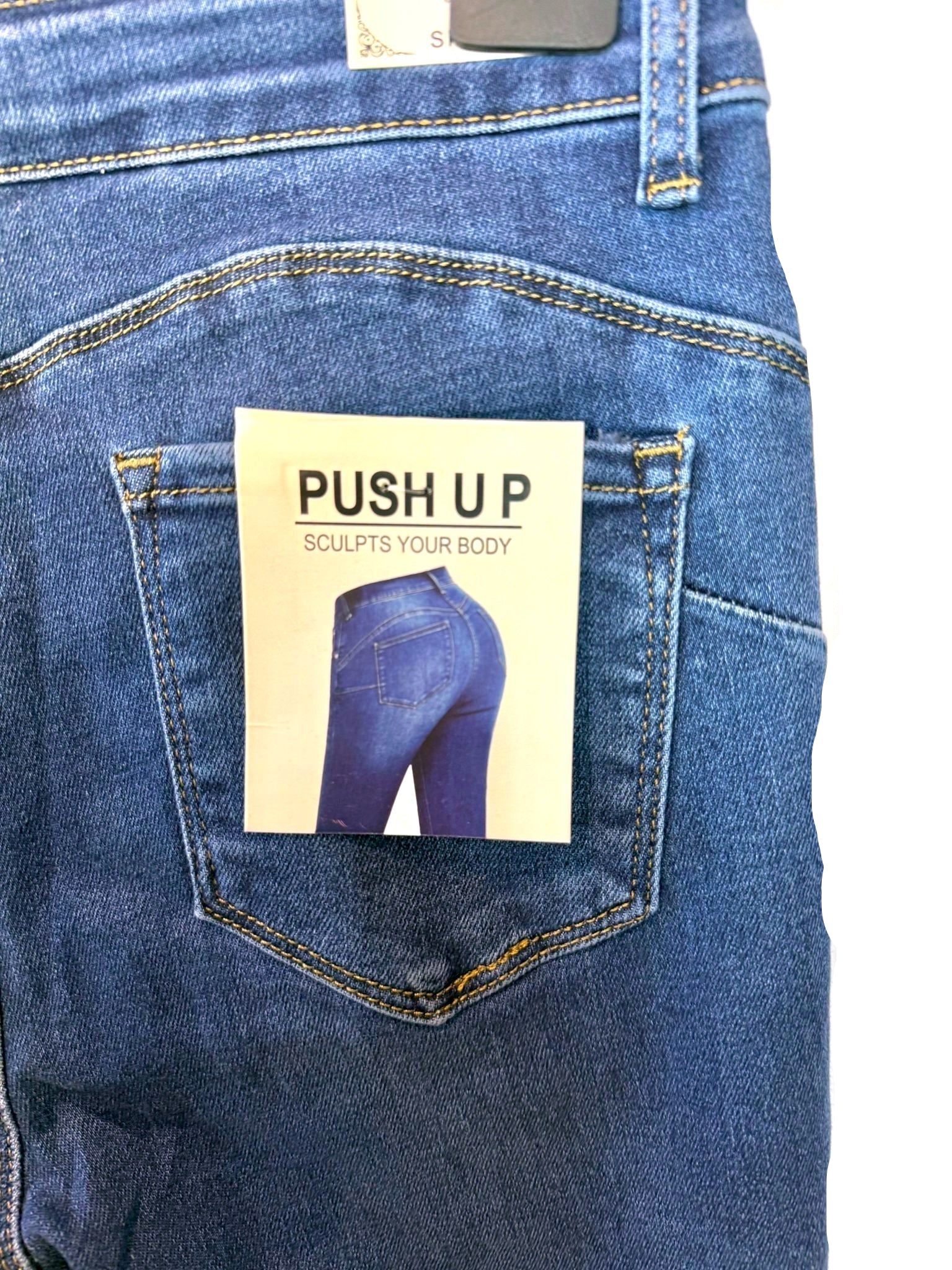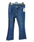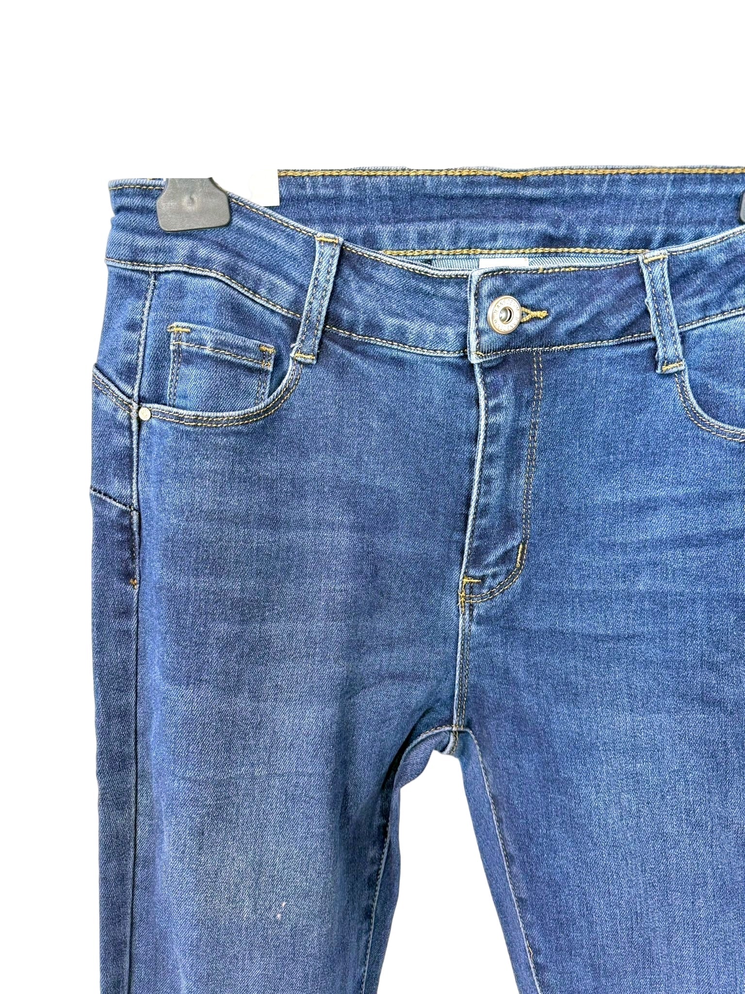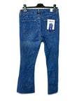 Tallas: XS, M, L y XL. Color: vaquero azul. Vaquero Sara de corte flare con bajo deshilachado y estilo cinco bolsillos. Tiro medio, cierre de botón y cremallera. Lavado azul medio que estiliza y combina con todo: ideal para looks casual o con tacón para alargar la silueta.